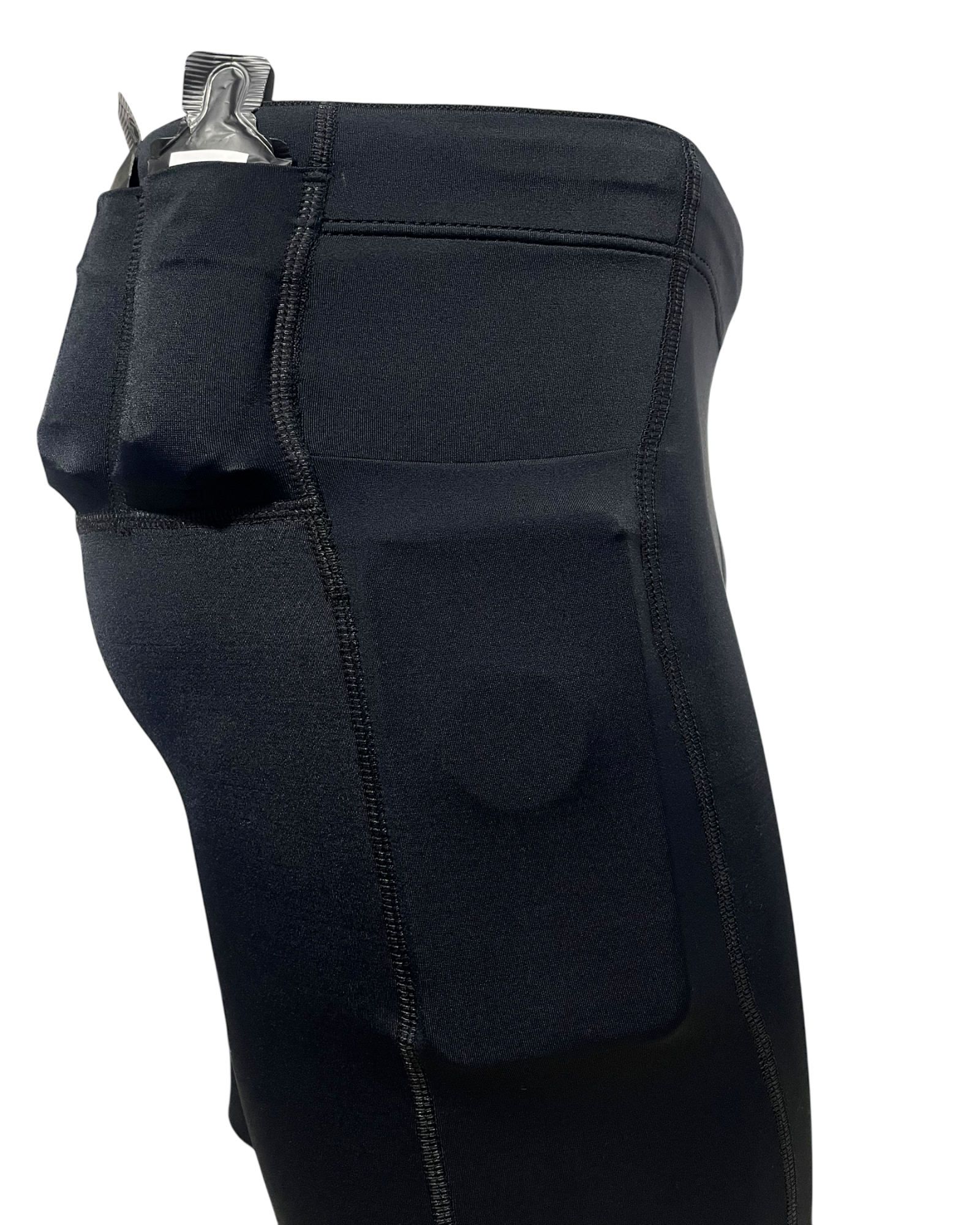 - Bolsillos laterales abiertos. Accede a geles o pertenencias sin frenar ni rebuscar. Bolsillos reales, no tela añadida.